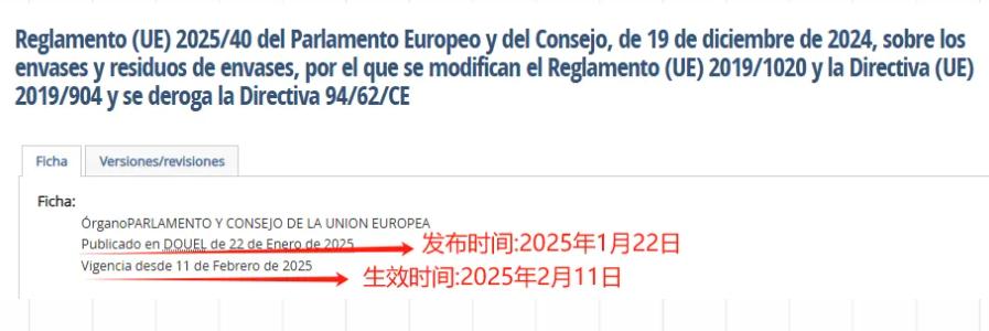 2025年1月22日,欧盟发布包装和包装废物法规 (EU) 2025/40(PPWR),以取代包装和包装废物指令 94/62/EC(PPWD),该法规将于2025年2月11日生效,并从2026年8月12日起执行,部分条款有过渡期。委员会需定期评估法规的实施情况,并根据需要提出修正案。