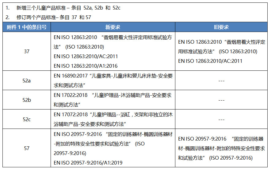 2020年12月1日,欧盟在其官方公报公布决议(EU) 2020/1808,以修订(EU) 2019/1698附件1的标准清单。该清单为支持《通用产品安全指令》(2001/95/EC)而起草的协调标准清单。